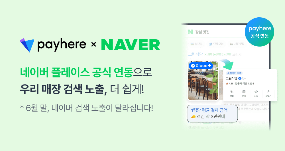2025년 6월 말부터 네이버 검색 노출 구조가 개편되면서, 페이히어 포스(셀러)를 사용하는 매장이라면 매장 정보 연동은 물론, 플레이스 마케팅까지 더 쉽고 간편하게 시작할 수 있게 되었거든요.