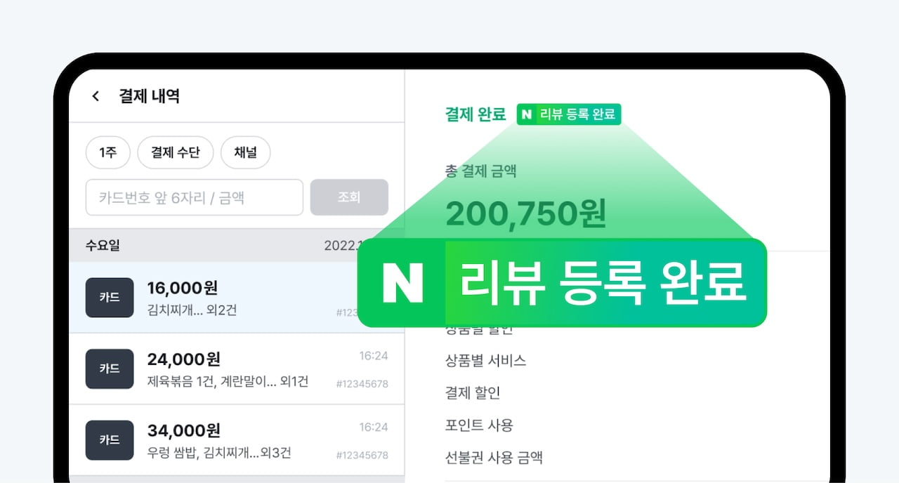 추가로 포스 결제 내역을 누르면 고객이 네이버 리뷰를 남겼는지 실시간 확인까지 가능해서 우리 매장의 리뷰 마케팅을 완벽하게 자동화할 수 있습니다.